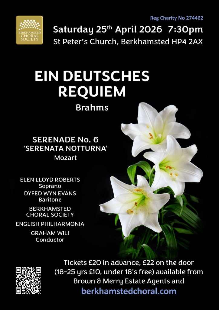 Join Berkhamsted Choral Society for a workshop singing the choruses from Fauré’s Requiem (Novello edition) and Handel’s glorious Coronation Anthem, Zadok the Priest, led by Graham Wili and accompanied by our expert pianist Fei Ren.