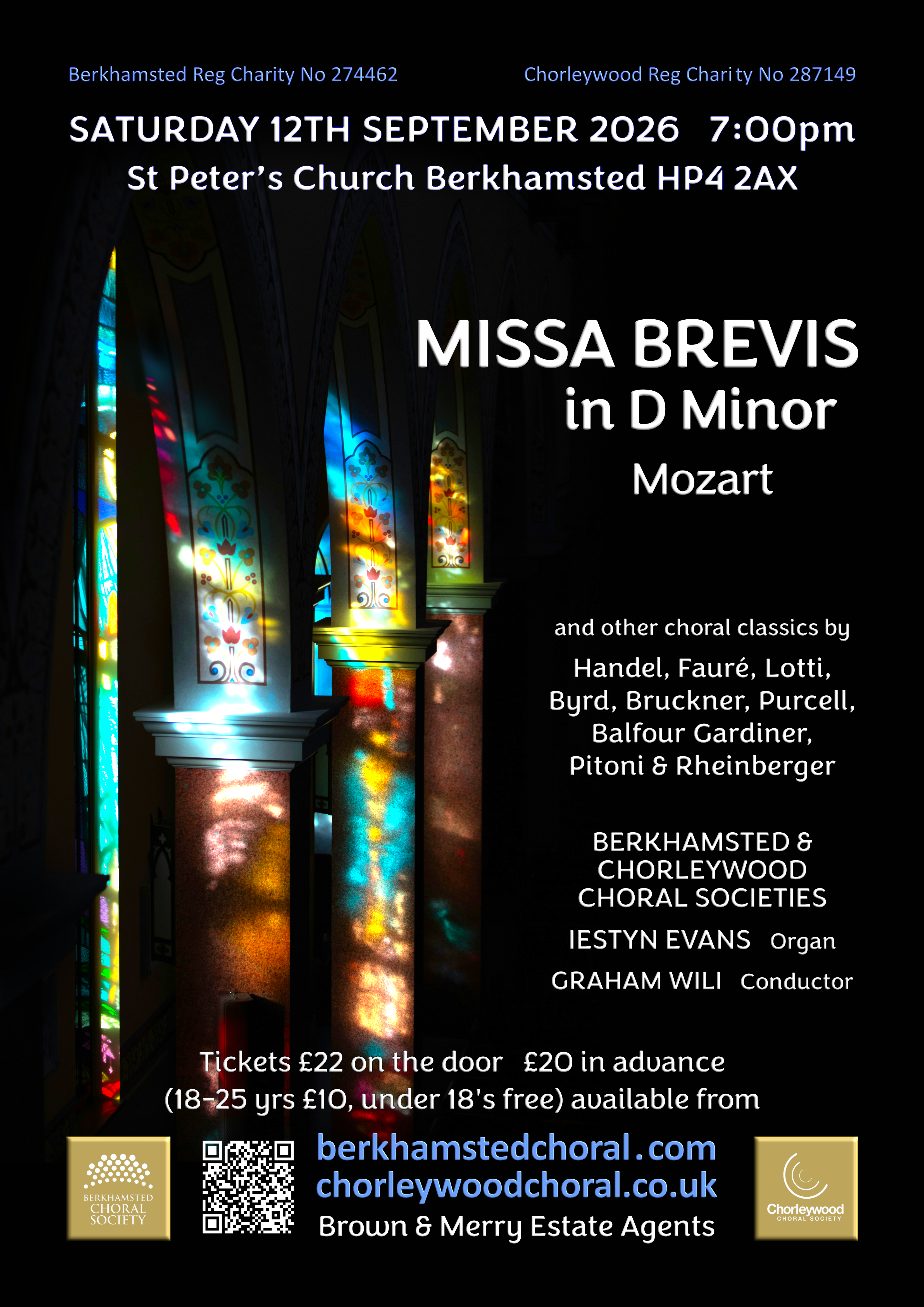 Our fourth and final concert is back in St Peter’s Church, Berkhamsted on Saturday 12th September. Join us if you can!